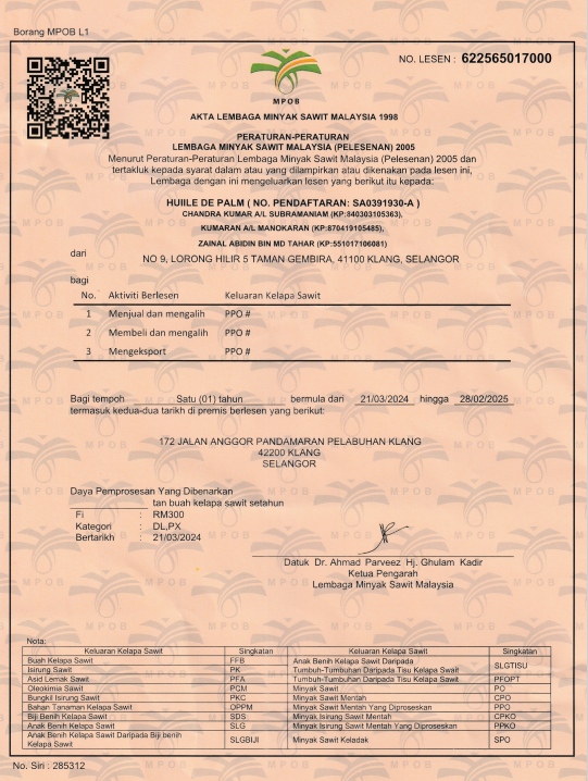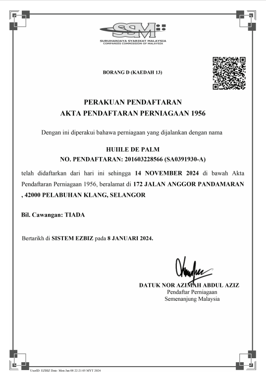 Founded in Malaysia in 2013, Huiile De Palm is a trusted global supplier of premium vegetable oils and fats. Drawing on decades of industry experience, we are committed to delivering sustainable, nutritious, and trans-fat-free solutions that consistently meet and exceed international quality and food safety standards.